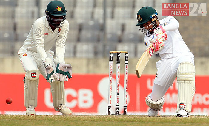 জিম্বাবুয়ের বিপক্ষে ব্যাটিং করছেন মুশফিকুর রহিম। ছবি: শোয়েব মিথুন