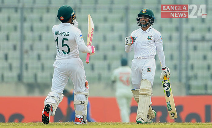 জিম্বাবুয়ের বিপক্ষে ব্যাটিংয়ে মুমিনুল হক ও মুশফিকুর রহিম। ছবি: শোয়েব মিথুন
