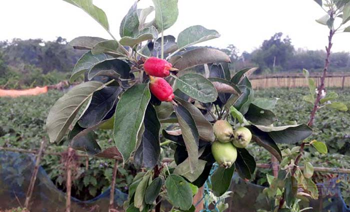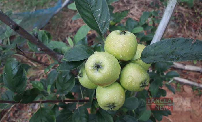 গাছের শাখায় সুস্বাদু আপেল। ছবি: সুদীপ চন্দ্র নাথ