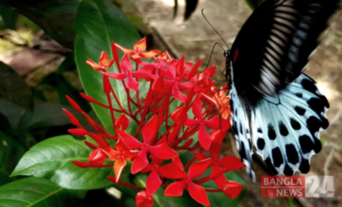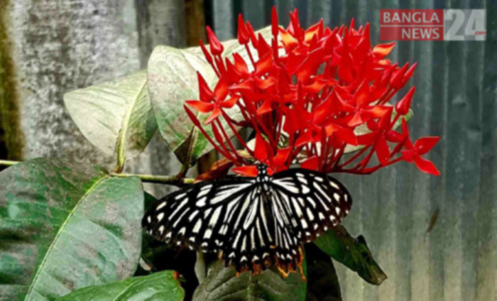ফুলের মধু খেতে বসেছে প্রজাপতি। বাগেরহাটের কচুয়া উপজেলার নরেন্দ্রপুর গ্রাম থেকে ছবিটি তুলেছেন এস এস শোহান