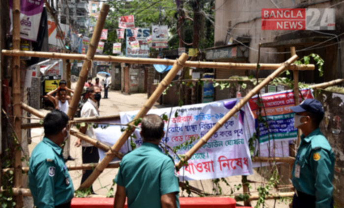 করোনা ভাইরাস সংক্রমণ রোধে রাজধানীর পূর্ব রাজাবাজার এলাকা ‘রেড জোন’ চিহ্নিত। ছবি: শাকিল আহমেদ