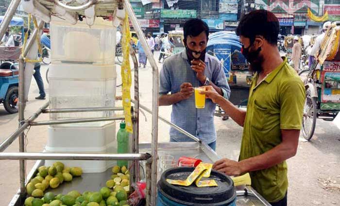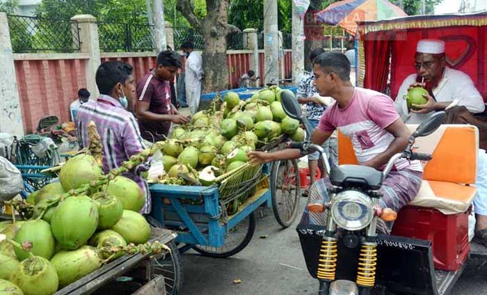 বগুড়ায় ভ্যাপসা গরমে অতিষ্ঠ জনজীবনে ডাব ও শরবতে স্বস্তি খুঁজছেন সাধারণ মানুষ। ছবি: কাওছার উল্লাহ আরিফ।