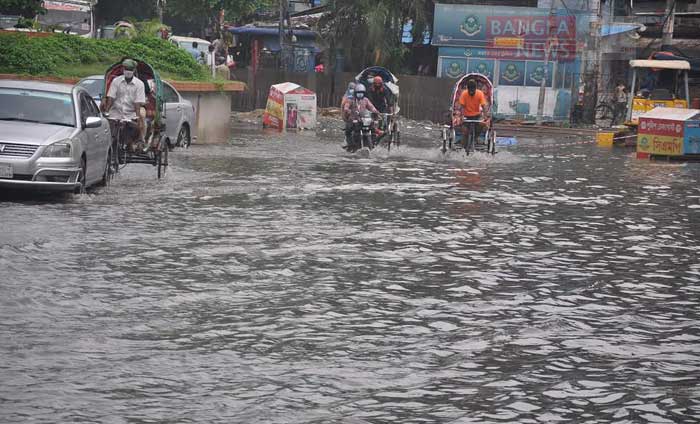 বুধবার (১০ জুন) বৃষ্টিতে চট্টগ্রাম নগরের প্রবর্তক মোড়ে জলাবদ্ধতা সৃষ্টি হয়। ছবি: সোহেল সরওয়ার