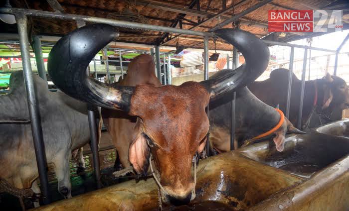 মোহাম্মদপুরের ফার্মগুলোতে বিক্রি হচ্ছে রাজস্থানের বড় শিংওয়ালা গরু, ছবি: জি এম মুজিবুর