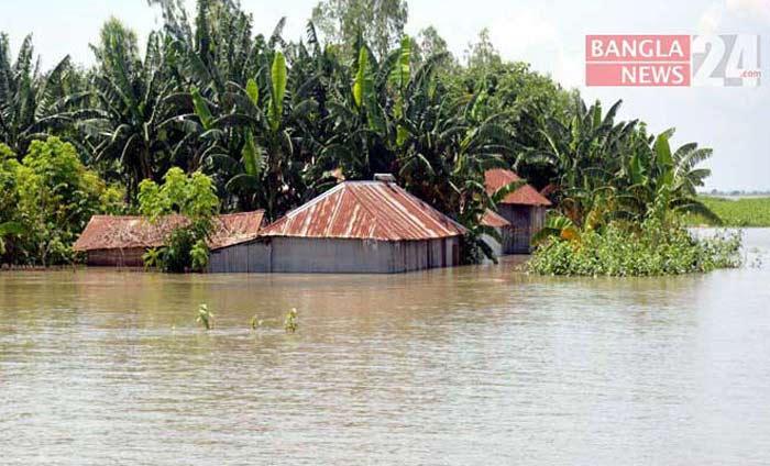 বৃষ্টিপাত ও উজান থেকে নেমে আসা ঢলে বগুড়ার ১৬টি ইউনিয়নের নিম্নাঞ্চল প্লাবিত/ছবি: কাওছার উল্লাহ আরিফ
