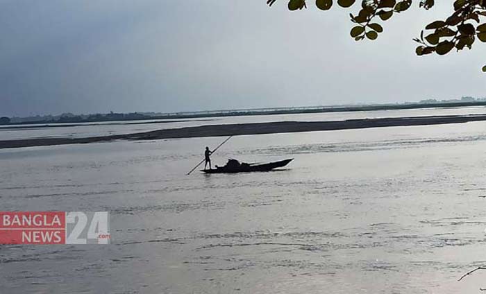 তিস্তা নদীতে ডিঙি নৌকায় করে মাছ শিকার করছেন একজন জেলে/ছবি: খোরশেদ আলম সাগর