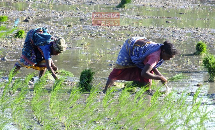 জমিতে ধানের চারা বপন করছেন নারী শ্রমিকরা। ছবিটি ঈশ্বরদী-ঢাকা রেলপথের মুলাডুলি স্টেশন এলাকা থেকে ছবিটি তুলেছেন টিপু সুলতান।