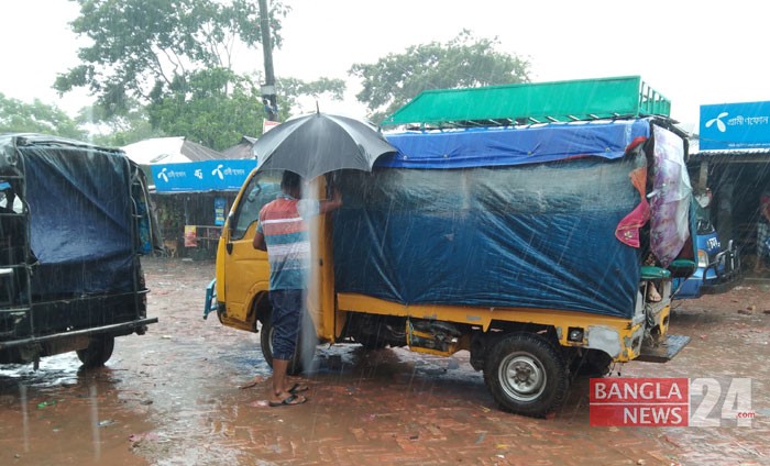 উপকূলীয় জেলা বরগুনায় ৩ নম্বর সতর্ক সংকেত চলছে। ভারি বৃষ্টিপাতের কারণে জনজীবন বিপর্যস্ত। ছবিটি বুধবার তোলা। ছবি: জাহিদুল ইসলাম মেহেদী