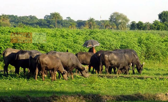 মাঠে মহিষ চড়াচ্ছে গৃহস্থ। পাবনার ঈশ্বরদী উপজেলার সাঁড়া ইউনিয়নের আসনা আরামবাড়িয়া থেকে ছবিটি তুলেছেন টিপু সুলতান।