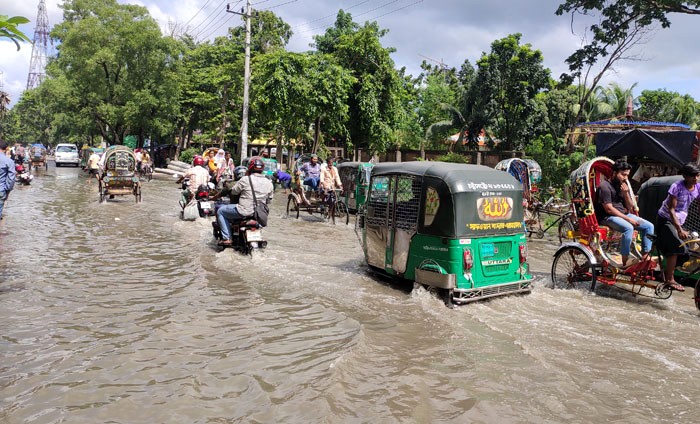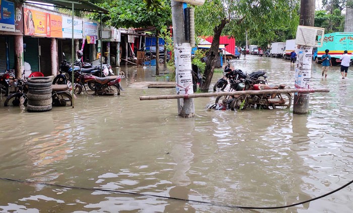 ঝড়-বৃষ্টির পাশাপাশি কর্ণফুলী নদীর জোয়ারের পানিতে সৃষ্ট জলাবদ্ধতায় মানুয়ে ভোগান্তি। চট্টগ্রাম নগরীর আগ্রাবাদ সিডিএ আবাসিক এলাকা থেকে ছবি তুলেছেন সোহেল সারওয়ার।