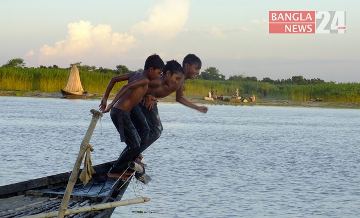 তীব্র গরমে দুরন্তপনায় মেতে উঠেছে কিশোররা। ছবি: টিপু সুলতান