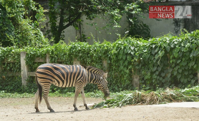 ক্ষুধা নিবারণে ঘাঁস খেতে ব্যস্ত জেব্রা। ছবিটি জাতীয় চিড়িয়াখানা থেকে তুলেছেন জি এম মুজিবুর
