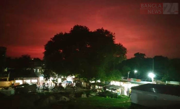 মেহেরপুরে সন্ধ্যার রক্তিম আকাশ। ছবি: জুলফিকার আলী কানন
