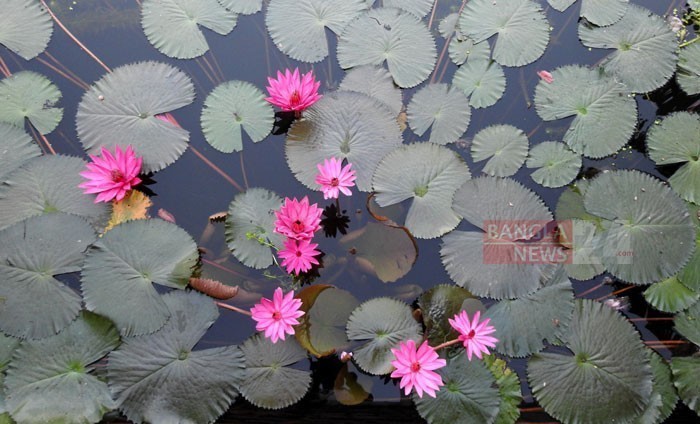 ঝিলের জলে লাল শাপলা। ছবিটি মাগুরার পশ্চিম দোয়ার পাড় থেকে তুলেছেন জয়ন্ত জোয়ার্দ্দার।