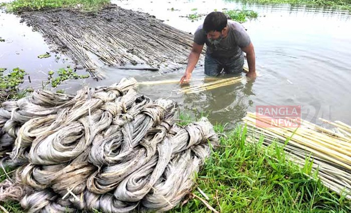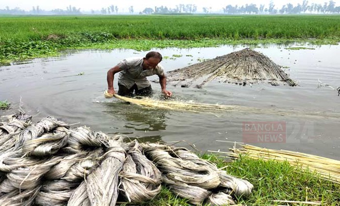 সোনালী আঁশে হাসি ফুটেছে কৃষকের। ছবি: কাওছার উল্লাহ আরিফ