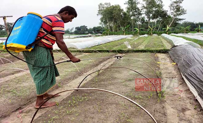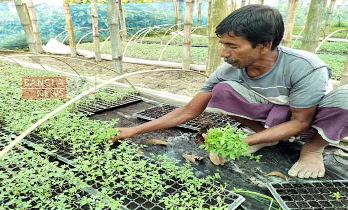 আগাম সবজি চাষে বীজতলায় ব্যস্ত কৃষক। ছবি: কাওছার উল্লাহ আরিফ