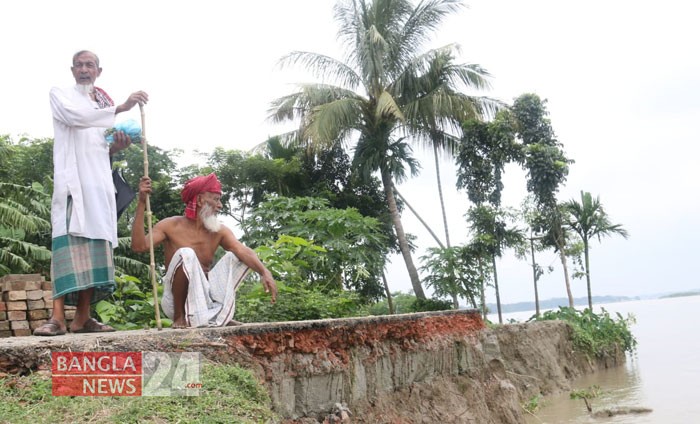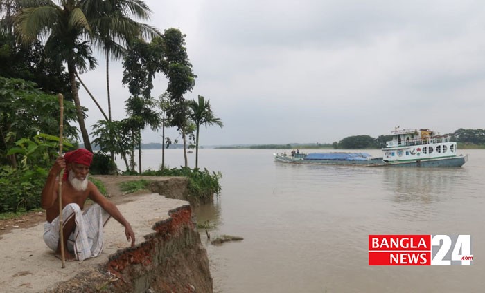 আড়িয়াল খাঁ’র ভাঙনে দিশেহারা বরিশালের বাবুগঞ্জের আরজি কালিকাপুর এলাকার বাসিন্দারা। ছবি: এন আমিন রাসেল