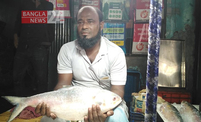 ইলিশ ধরা পড়ছে কম, তবে আকৃতিতে বড়। তাই খুশি বরিশালের মৎ ব্যবসায়ীরা। বরিশাল নগরের পোর্টরোড থেকে ছবিটি তুলেছেন এন আমিন রাসেল।