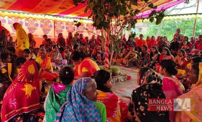 রায়গঞ্জে মাহাতো পল্লীতে উদযাপন হচ্ছে ঐতিহ্যবাহী করম পরব। ছবি: স্বপন চন্দ্র দাস