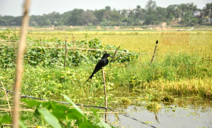 শিকারের অপেক্ষায় বাঁশের কঞ্চিতে বসে আছে শিকারি ফিঙে। ছবি: জিএম মুজিবুর