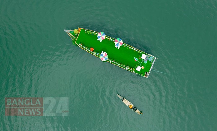 পাখির দৃষ্টিতে টাঙ্গুয়ার হাওরে হাউজ বোট। ছবি: জয়ন্ত জোয়ার্দ্দার