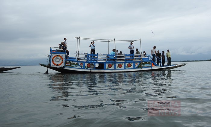 টাঙ্গুয়ার হাওরে পর্যটকদের ভিড়। ছবি: জয়ন্ত জোয়ার্দ্দার