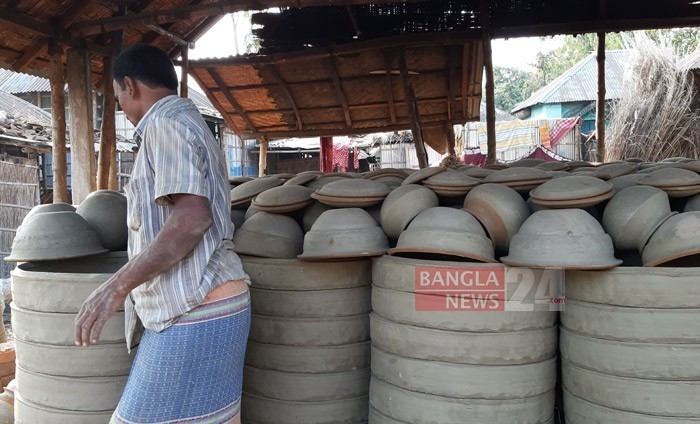 সৈয়দপুরে কুমারপাড়ায় মাটির তৈজসপত্র পোড়ানোর প্রস্ততি। ছবি: আমিরুজ্জামান