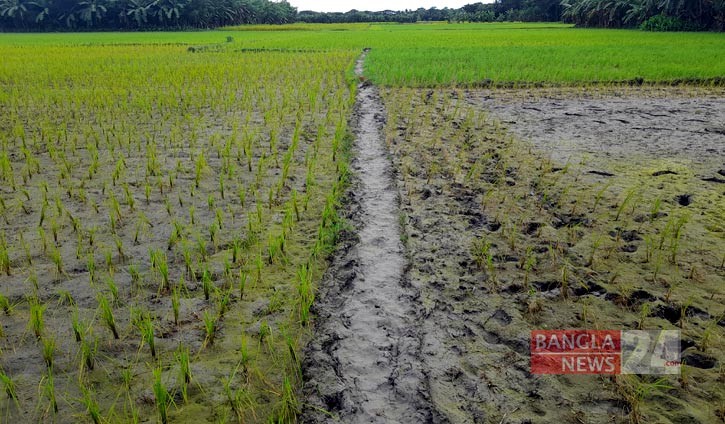 অনাবৃষ্টিতে আমন ধানের ক্ষেত শুকিয়ে যাওয়ায় ফলনে বিরূপ প্রভাবের আশঙ্কা কৃষকদের। ছবিটি লক্ষ্মীপুরের কমলনগর উপজেলা চরমার্টিন এলাকা থেকে তুলেছেন মো. নিজাম উদ্দিন