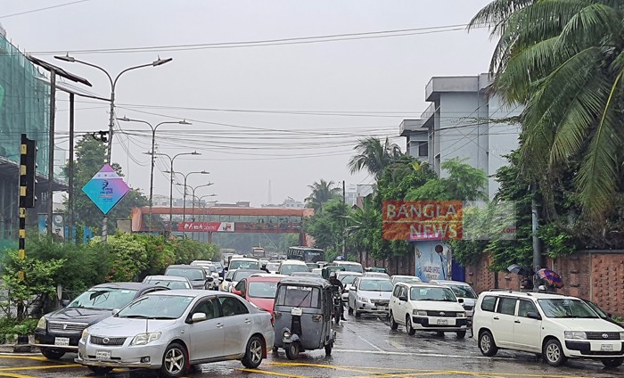 বৃষ্টির কারণে রাজধানীতে তীব্র যানজট। তেজগাঁও পুরাতন বিমানবন্দর এলাকা থেকে ছবিটি তুলেছেন জি এম মুজিবুর।