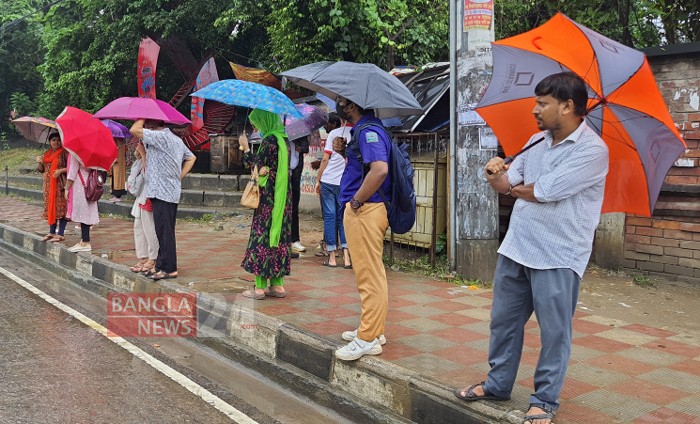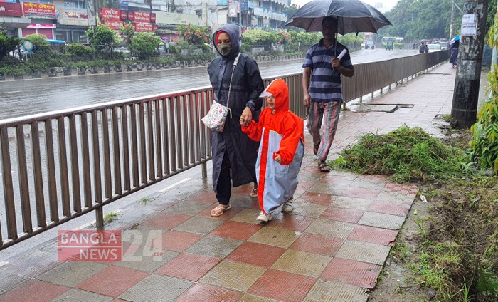 রেইনকোটের বিকল্প হিসাবে ব্যবহার করছেন ছাতা। শেরেবাংলা এলাকা থেকে ছবিটি তুলেছেন জি এম মুজিবুর।