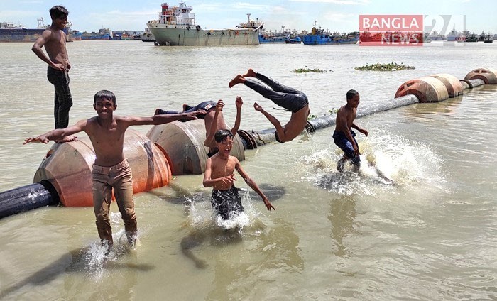 কর্ণফুলি নদীতে দুরন্তপনায় মেতে উঠেছে শিশু-কিশোররা। ছবি: উজ্জ্বল ধর