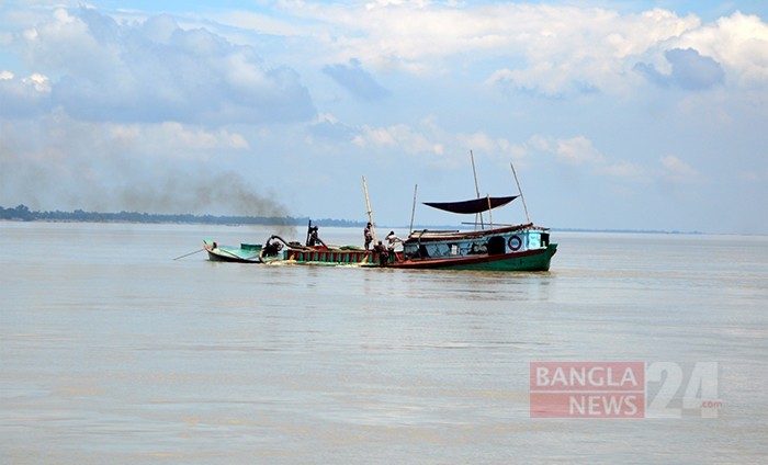 কুড়িগ্রামের ব্রহ্মপুত্র নদের বুকে চলছে পাথর, কয়লা, বালুবাহী কার্গো বোট। ছবি: ফজলে ইলাহী স্বপন