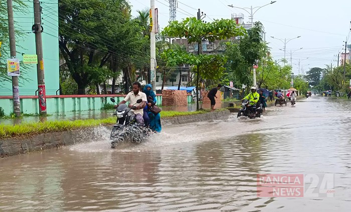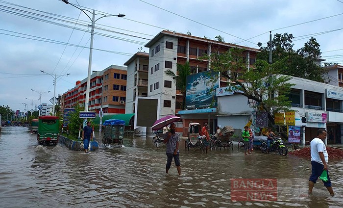 টানা বৃষ্টিতে খুলনা মহানগরীর নিম্ন এলাকা তলিয়ে যাওয়ায় ভোগান্তিতে সাধারণ মানুষ। ছবি: মাহবুবুর রহমান মুন্না