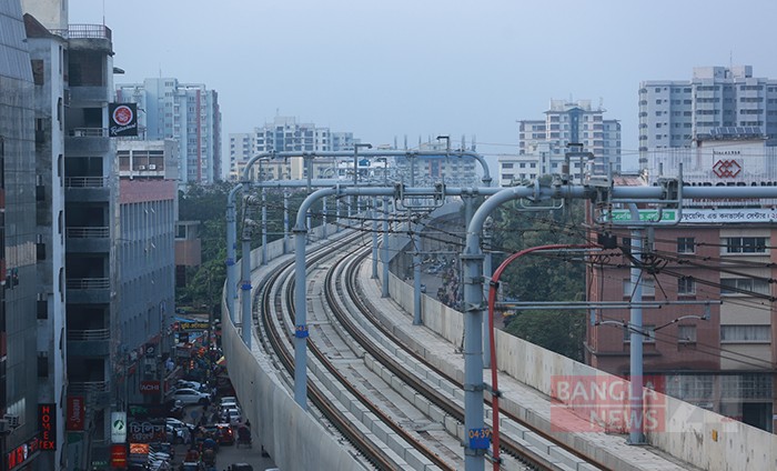 রাজধানীর মিরপুর ১২ থেকে মেট্রোরেল প্রকল্পের ছবিটি তুলেছেন রাজিন চৌধুরি।