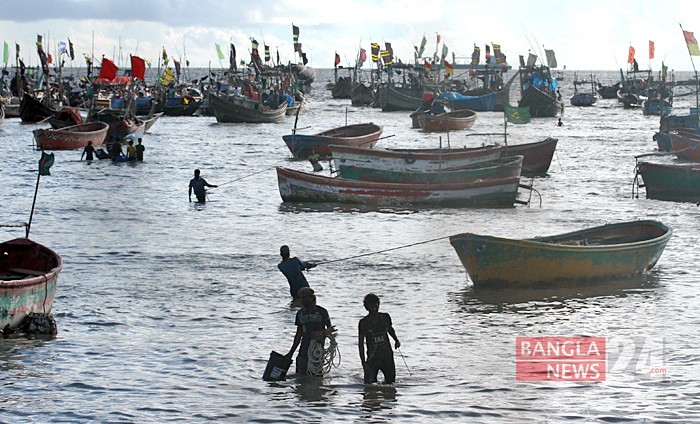 ইলিশ ধরার মৌসুমে ব্যস্ত চট্টগ্রামের দক্ষিণ কাট্টলী রাসমনি ঘাটের জেলেরা। ছবি: উজ্জ্বল ধর