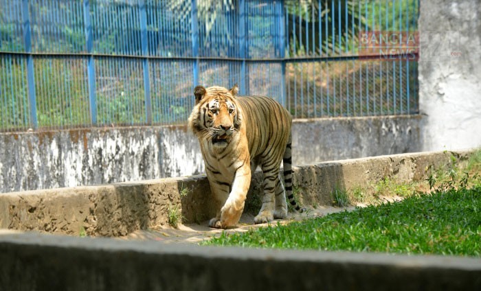 হেলেদুলে ঘুরে বেড়াচ্ছে বাঘ। ছবিটি মিরপুর জাতীয় চিড়িয়াখানা থেকে তুলেছেন জি এম মুজিবুর।