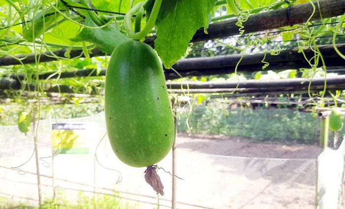 মাচায় ঝুলছে সবুজ চাল কুমড়া। ছবি: মেহেদী নূর