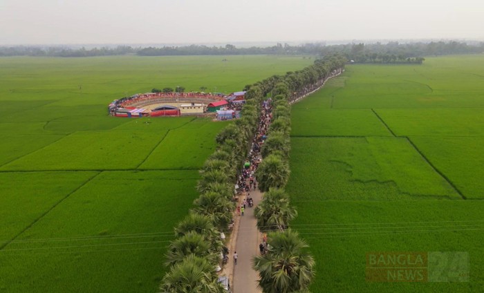 নওগাঁর নিয়ামতপুরের হাজীনগর ইউনিয়নের ঘুঘুডাঙ্গা তালসড়কে তিন কিলোমিটার জমিজুড়ে চলছে তাল পিঠার মেলা। ছবি: তৌহিদ ইসলাম