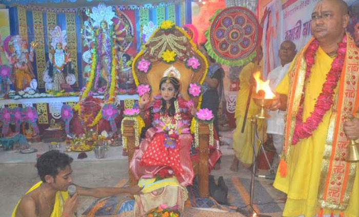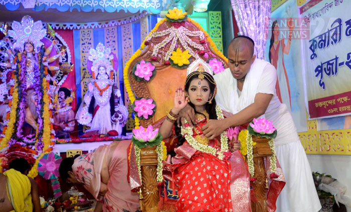 চট্টগ্রামের পাথরঘাটা শান্তশ্বরী মন্দিরে কুমারী পূজা অনুষ্ঠিত। ছবি: উজ্জ্বল ধর