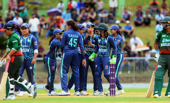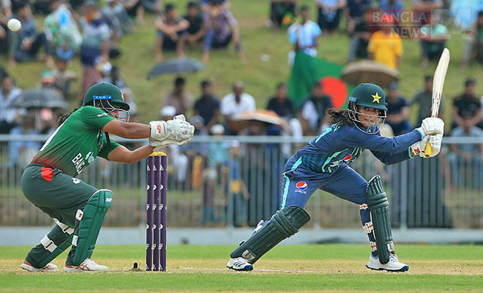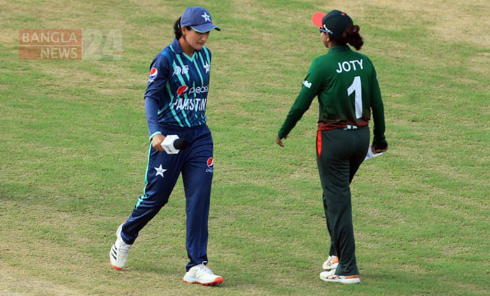 সোমবার (৩ অক্টোবর) সিলেট আন্তর্জাতিক ক্রিকেট স্টেডিয়ামে পাকিস্তান নারী দলের কাছে ৯ উইকেটের বড় ব্যবধানে হেরেছে বাংলাদেশের মেয়েরা। ছবি: শোয়েব মিথুন।