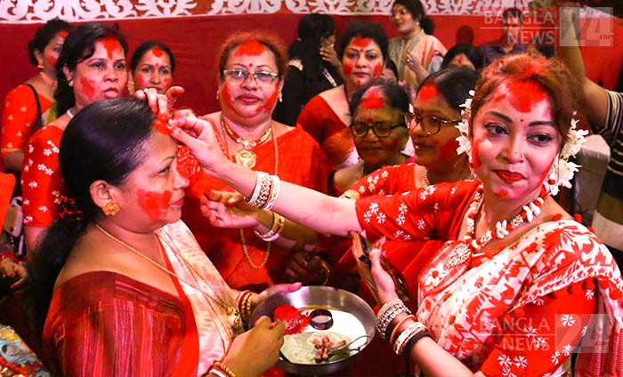 ঢাকের তালে সিঁদুর খেলায় মেতে উঠেছেন সনাতন ধর্মাবলম্বী নারীরা। ছবিটি বগুড়া থেকে তুলেছেন কাওছার উল্লাহ আরিফ