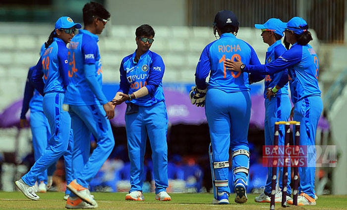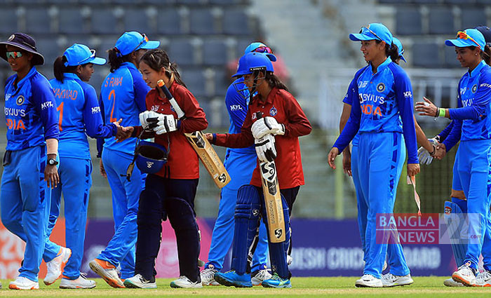 বৃহস্পতিবার সিলেট আন্তর্জাতিক ক্রিকেট স্টেডিয়ামে নারী এশিয়া কাপের সেমিফাইনালে থাইল্যান্ডকে ৭৪ রানে হারিয়েছে ভারত। স্টেডিয়াম থেকে ছবিটি তুলেছেন শোয়েব মিথুন।
