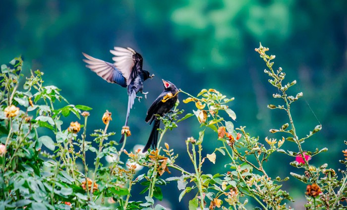 খুনসুটিতে ব্যস্ত কালো ফিঙে। ছবি: আনোয়ার পারভেজ