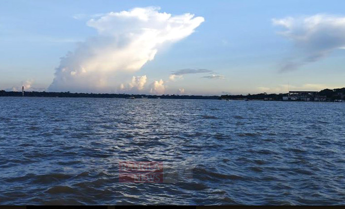 শরতের নীল আকাশে সাদা মেঘের ভেলা। বরিশালের কীর্তনখোলা নদী থেকে ছবিটি তুলেছেন মুশফিক সৌরভ