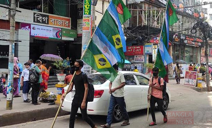 দুয়ারে কড়া নাড়ছে বিশ্বকাপ ফুটবল টুর্নামেন্ট। এরই মধ্যে চট্টগ্রাম নগরীর রাজপথে হকাররা বিক্রয় করতে শুরু করেছেন প্রিয় দলগুলো জাতীয় পতাকা। ছবি: উজ্জ্বল ধর