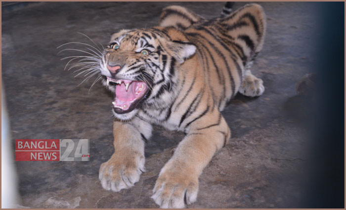 বাঘ শাবকটি গর্জন করে ভয় দেখাচ্ছে দর্শনার্থীদের। জাতীয় চিড়িয়াখানা থেকে ছবি তুলেছেন জিএম মুজিবুর।