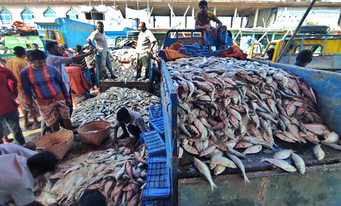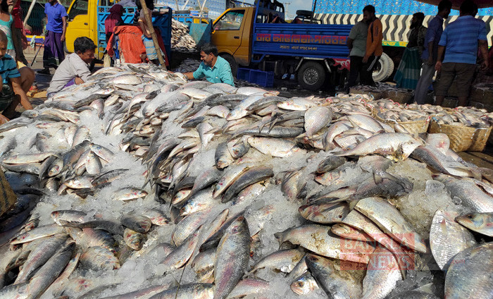 জালে ধরা পড়ছে ঝাঁকে ঝাঁকে ছেট-বড় ইলিশ। ছবি: উজ্জ্বল ধর