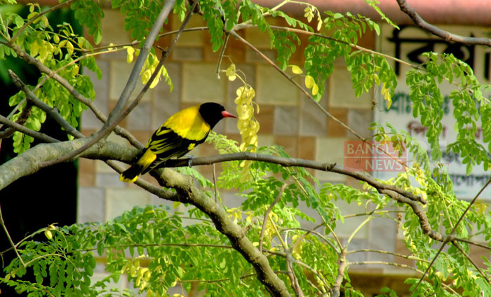ইষ্টি কুটুম পাখি। আবার গায়ের রঙের জন্য অনেকেই একে হলদে পাখি বলে। ছবি: টিপু সুলতান