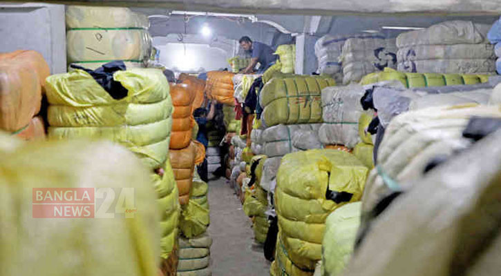 চীন-তাইওয়ান-কোরিয়া থেকে আসতে শুরু করেছে আমদানি করা পুরাতন শীতবস্ত্র। কম্বল, সুয়েটার, জ্যাকেটের এসব কাপড়ের বাণ্ডিল ৫ থেকে ২০ হাজার টাকায় বিক্রয় করা হয় চট্টগ্রামের খাতুনগঞ্জে। ছবি: উজ্জ্বল ধর