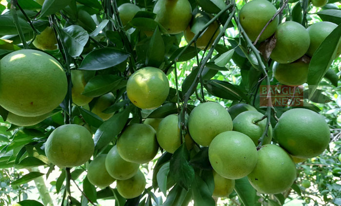 গাছে ঝুলছে সবুজ মাল্টা। লক্ষ্মীপুর সদর উপজেলার শাকচর এলাকায় সাইফুল ইসলাম নামে এক চাষীর বাগান থেকে ছবিটি তুলেছেন মো. নিজাম উদ্দিন।